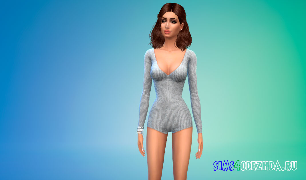 Короткий комбинезон с V-образным вырезом для Симс 4 – фото 1