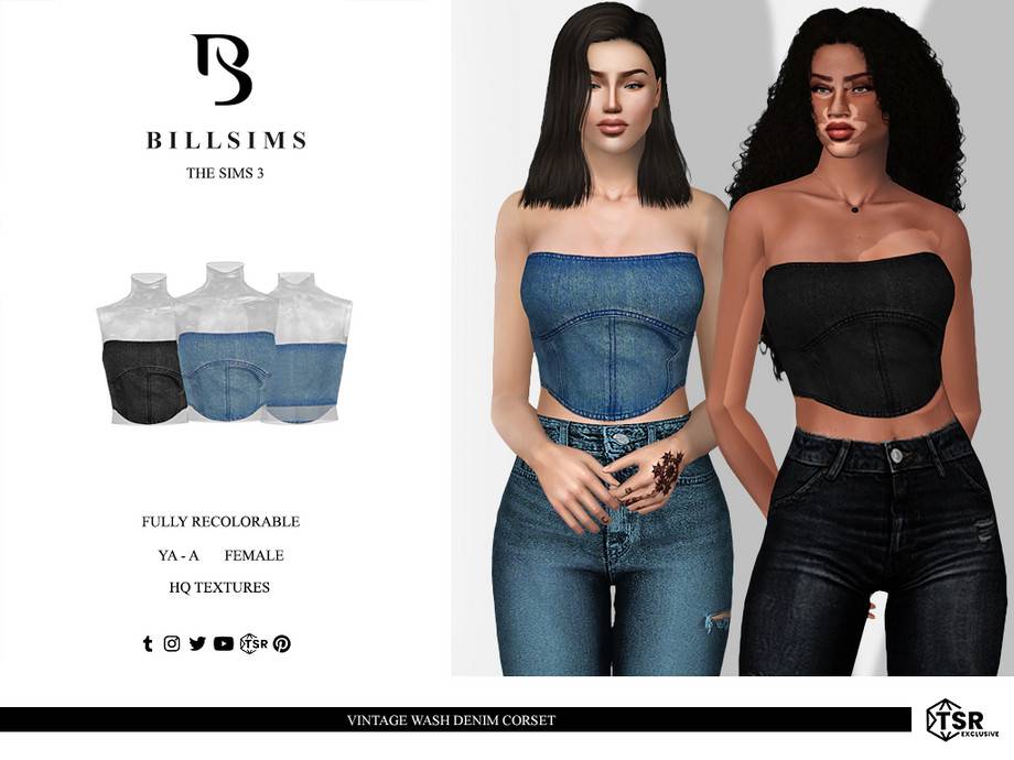 Корсет Vintage Wash Denim для Симс 3