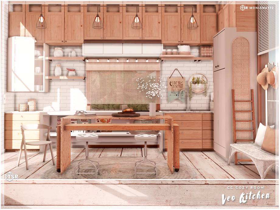 Красивая уютная деревенская кухня. Размер – 7×6, высота стен – средняя. Все необходимые моды находятся в архиве в папке Mods.