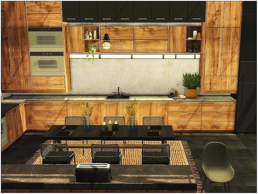 Красивая уютная деревенская кухня. Размер – 7×6, высота стен – средняя. Все необходимые моды находятся в архиве в папке Mods.