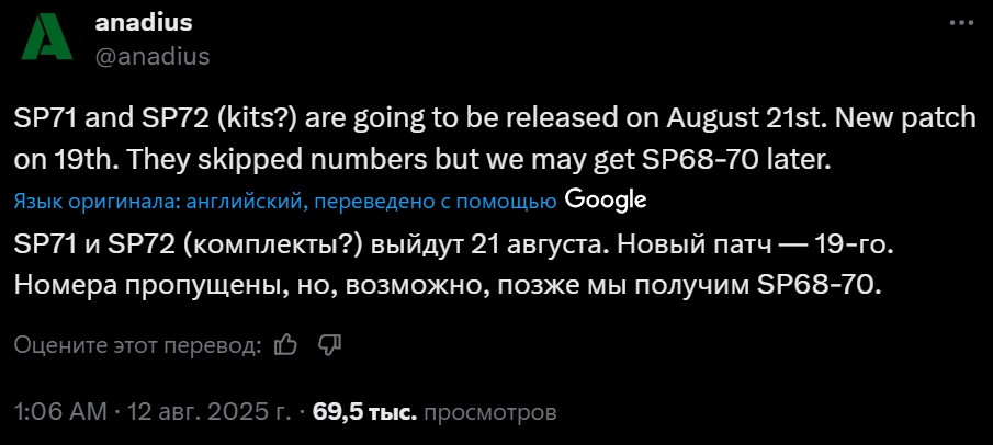 В посте также отмечается один необычный момент: несколько номеров наборов (Stuff Packs) были пропущены, что намекает на то, что SP68–70 всё ещё находятся в разработке или запланированы к выпуску в будущем.