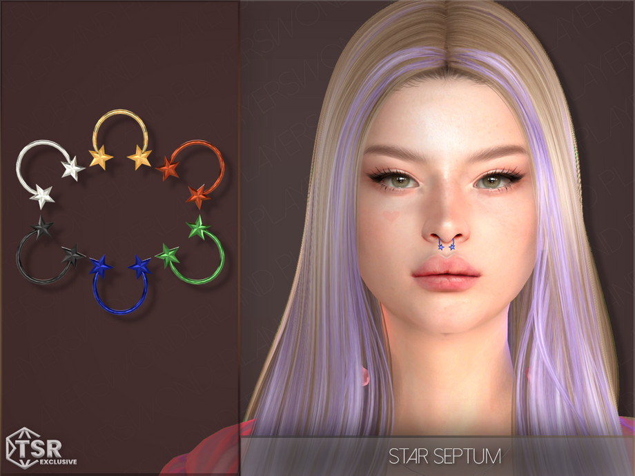 Пирсинг правой ноздри в 3 цветах.