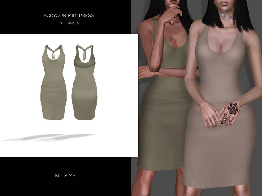 Платье Bodycon Midi Dress для Симс 3
