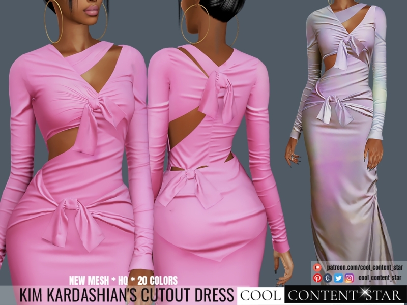 Платье Ким Кардашьян с вырезом для Симс 4