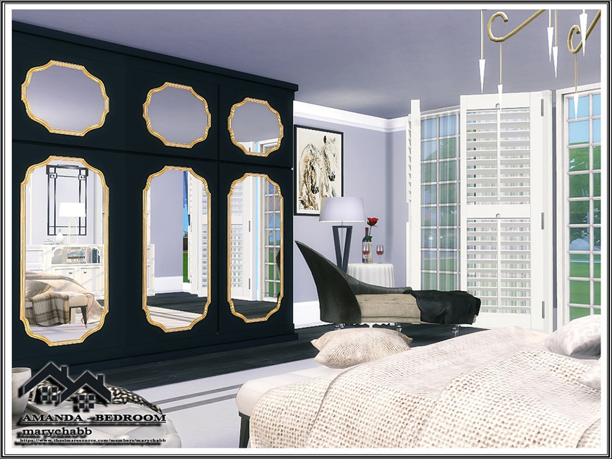 Красивая уютная современная семейная спальня. Размер – 9×7, высота стен – средняя. Все необходимые моды находятся в архиве в папке