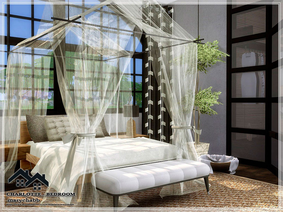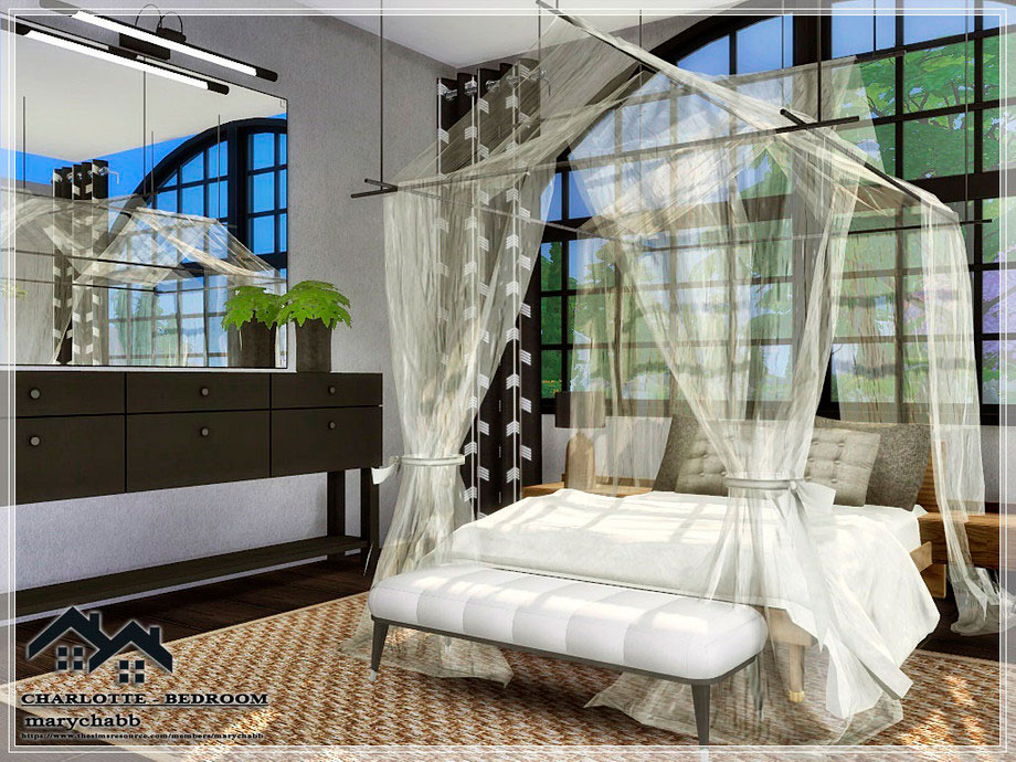 Красивая уютная современная семейная спальня. Размер – 9×7, высота стен – средняя. Все необходимые моды находятся в архиве в папке