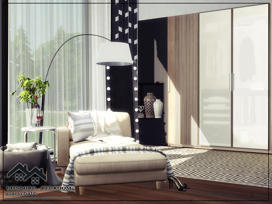 Красивая уютная современная семейная спальня. Размер – 9×7, высота стен – средняя. Все необходимые моды находятся в архиве в папке