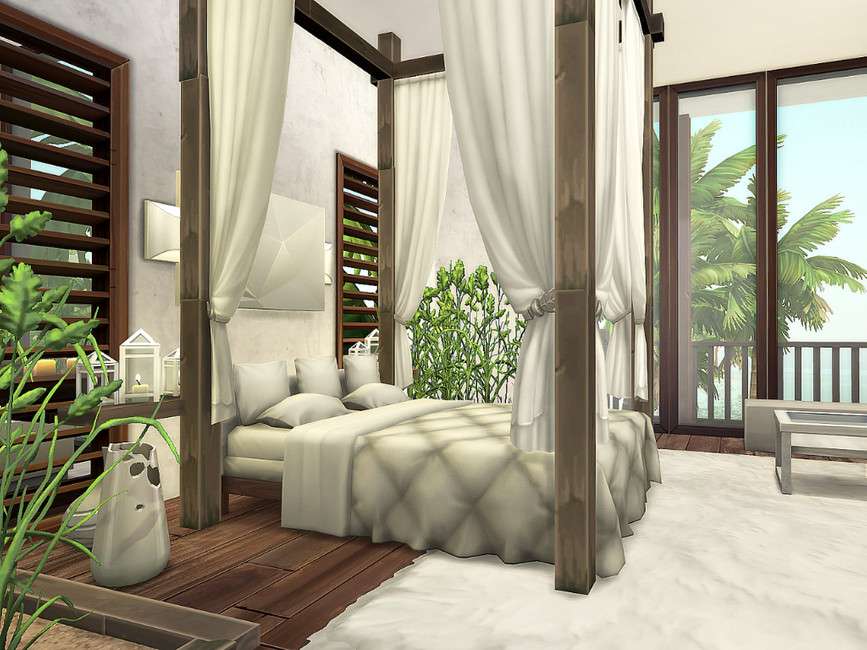 Очень большая и современная вилла в деревенско-карибском стиле для Сулани с бассейном и большой террасой. Без модов, стоимость – 229718, спален – 2, ванных комнат – 3, этажей – 3, размер участка – 40×30. Используйте код bb.moveobjects, прежде чем размещать его.