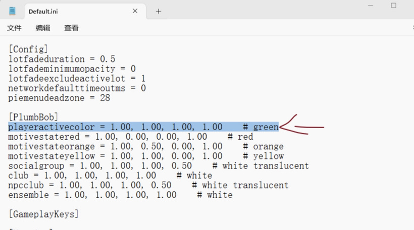 3. Найдите строку playeractivecolor и измените все значения в этой строке на 1.00 как показано на скрине ниже.