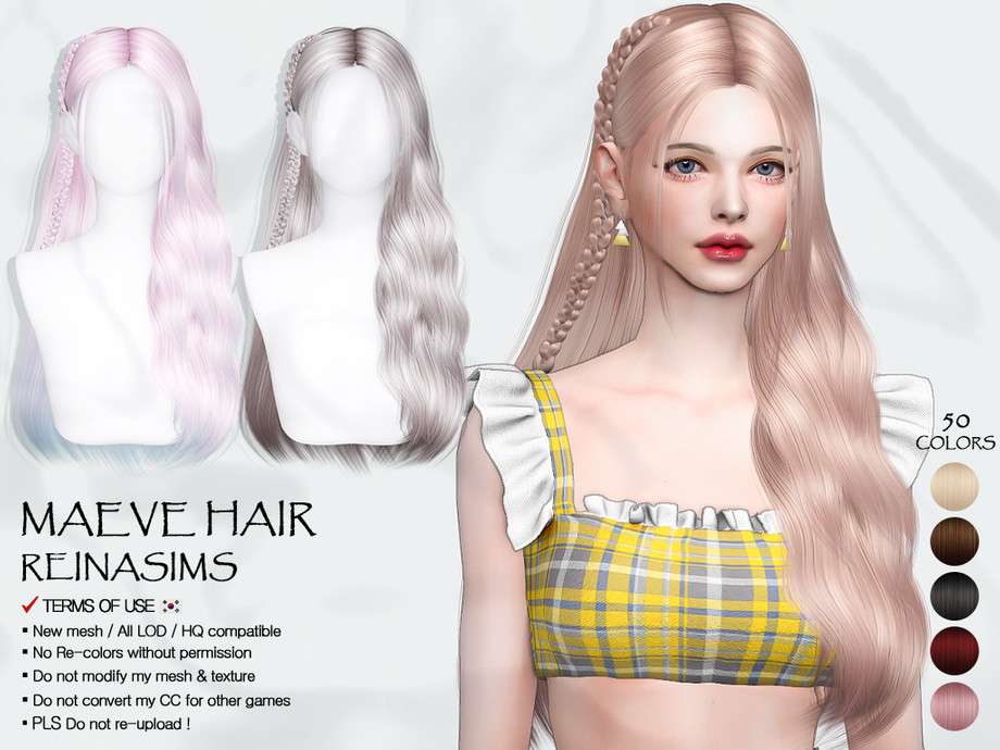 Стильная женская прическа с длинными, слегка волнистыми волосами, собранными на одну сторону. Подходит для симов всех возрастов и делает их образы мягкими и романтичными.