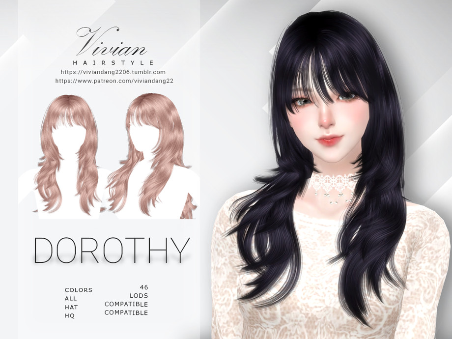 Длинные волосы с челкой в 45 цветах, работают с головными уборами. Мод HQ совместим.