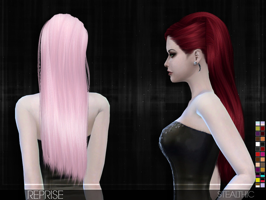 Длинные волосы с челкой в 45 цветах, работают с головными уборами. Мод HQ совместим.