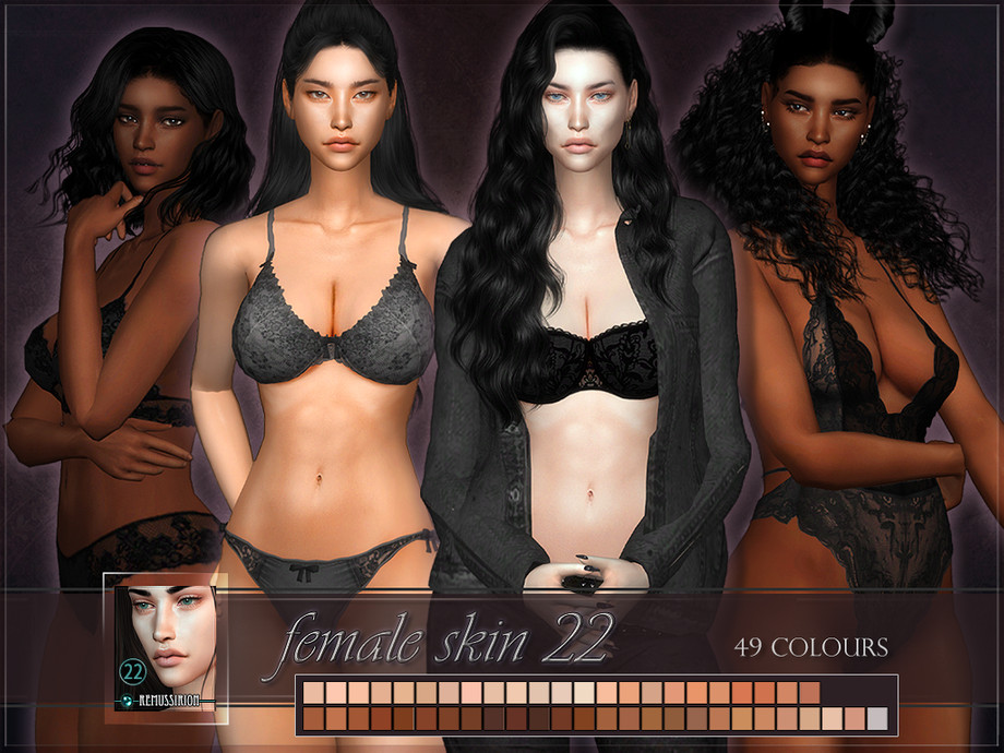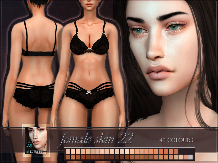 Женский скин с полным покрытием и широкой цветовой палитрой. Скин имеет собственные цвета (кожа с полным покрытием). Он не адаптируется к цветам кожи из базовой игры.