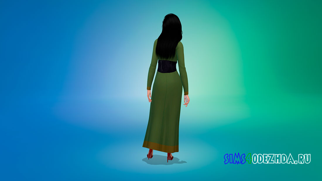 Струящееся платье с глубоким вырезом, золотыми деталями и длинными рукавами. Поставляется в 15 цветах.